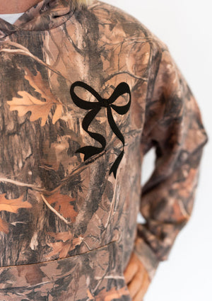 This pullover features a soft, allover camouflage print with a bold black bow design on both the front and back — the perfect mix of outdoorsy and girly. Whether you’re heading to a bonfire, running errands, or lounging in style, this hoodie keeps you comfy while turning heads.
