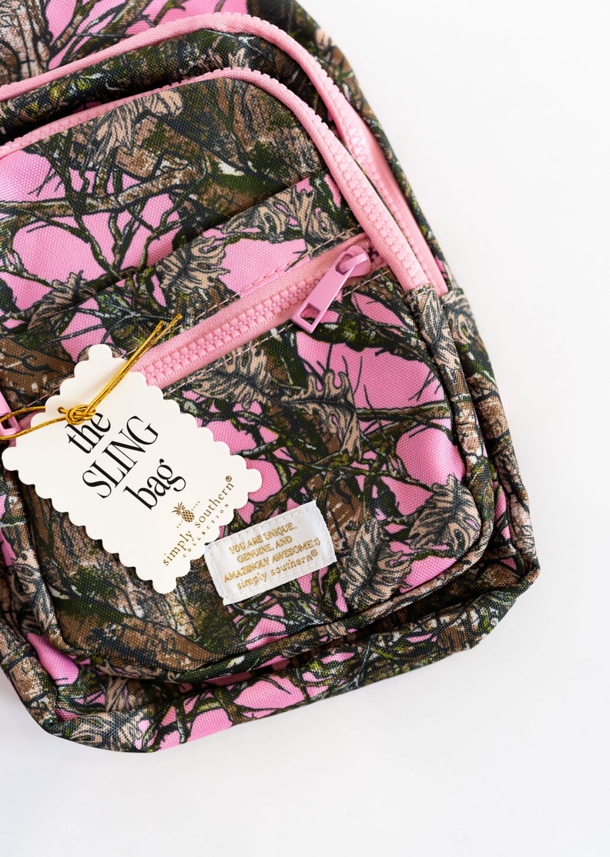 Adventure meets Southern charm! πΏπ This Simply Southern Sling Bag brings a pop of pink to classic camo β perfect for the gal who loves the outdoors and a good outfit moment.
