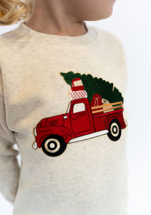 All aboard the holiday express! The Sweet Wink Christmas Truck Patch Crew is a cozy, festive favorite that brings instant Christmas cheer. Featuring a red truck patch carrying a tree and presents, this sweatshirt is soft, comfy, and full of merry magic.