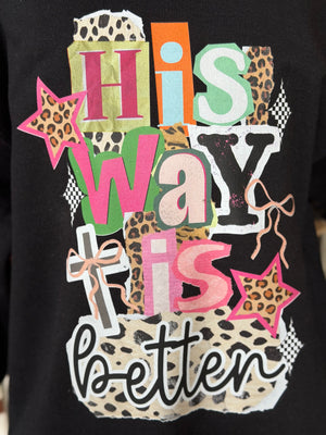 This faith-forward youth crewneck features a bold, colorful “His Way Is Better” graphic with playful patterns, stars, and cross details—perfect for littles who wear their heart (and faith) on their sleeve.