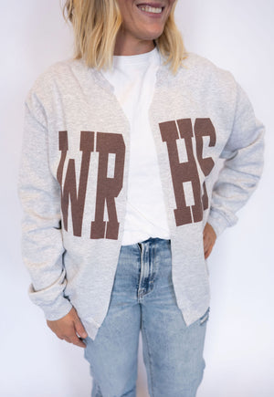 Show your local pride in comfort and style with our White River High School Sweatshirt Cardigan! This cozy layering piece features a classic varsity-style “WRHS” graphic across the front in maroon lettering, perfect for game days, school events, or everyday errands around town.